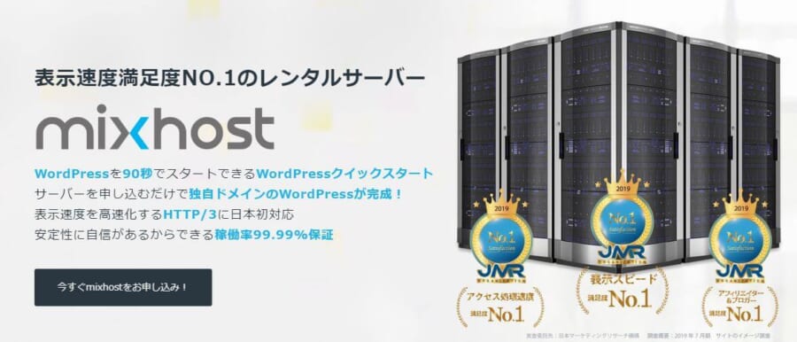 mixhostは「表示スピード満足度No.1の圧倒的な高性能」と宣伝しております。