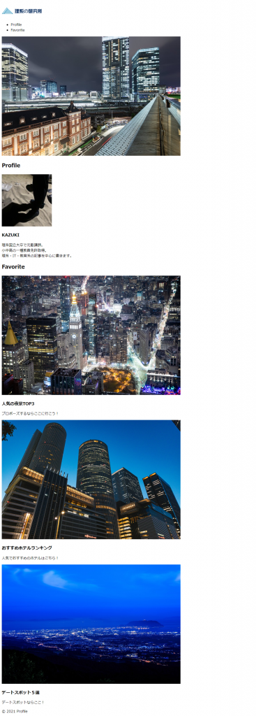 どうでしょうか。上の画像と下の画像では一目瞭然だと思います。画像の位置やレイアウト、文字の大きさや色などを調整するのがCSSの役割です。